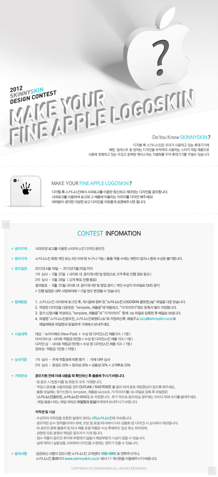 디지털 룩 스키니스킨에서 사과로고를 이용한 참신하고 재미있는 디자인을 공모합니다.