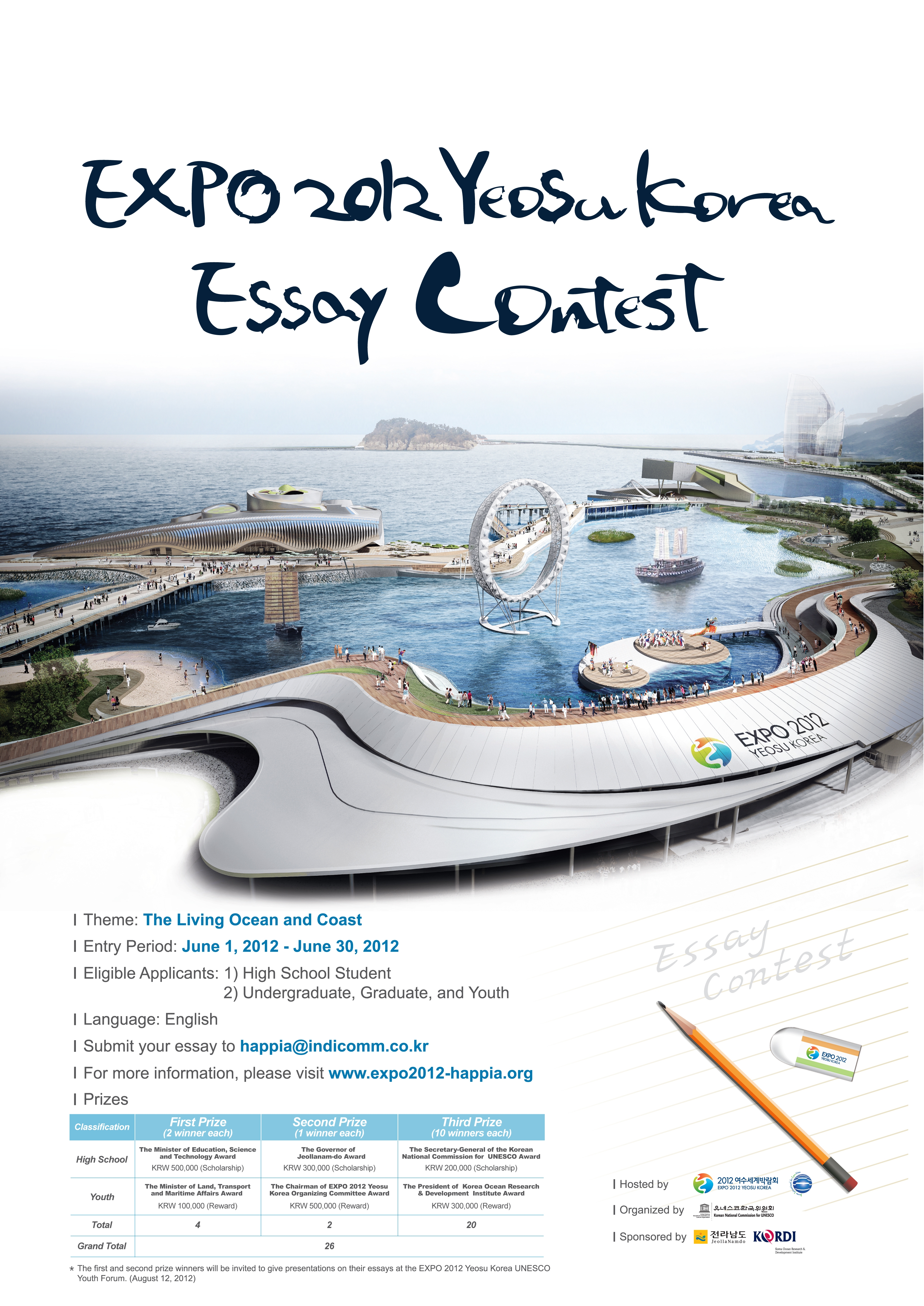 *최우수상 및 우수상 수상자들은 여수세계박람회 폐막일인 2012년8월12일 에 있을 2012여수세계박람회 유네스코 청년포럼에서 본인의 에세이 발표