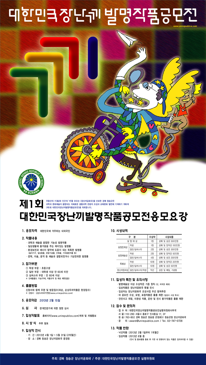 - 문의 : 대한민국장난끼발명작품공모전 실행담당