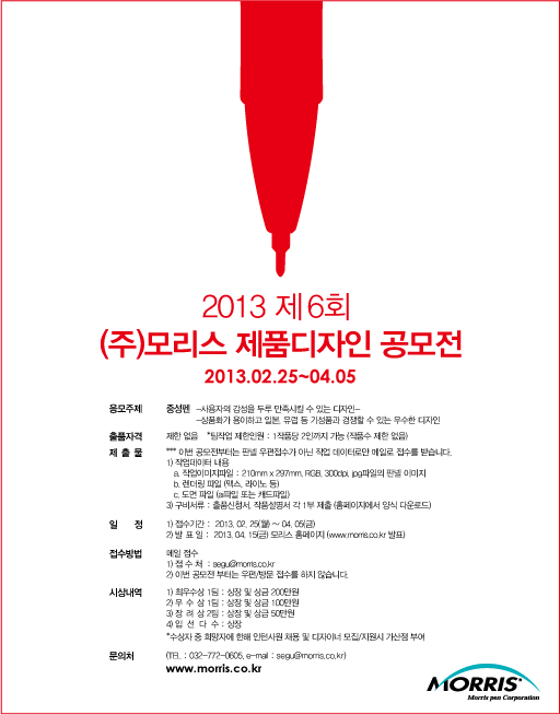 2013 제6회 ㈜모리스 제품디자인 공모전 요강