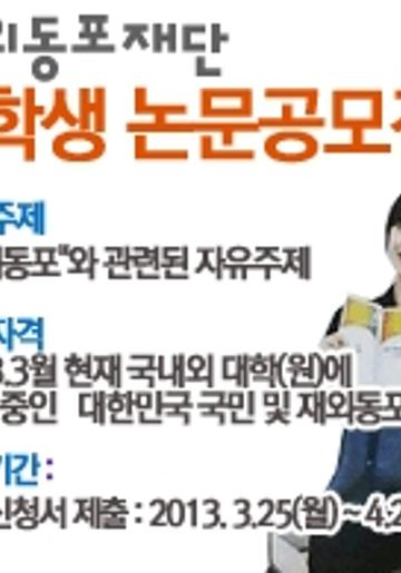 < 2013 재외동포재단 대학생 논문 공모전> 을 시행합니다.