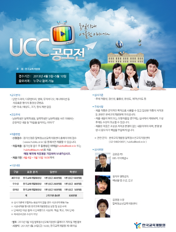 - 작품제출 : 참가신청 후 e-mail (hub4u@kedi.re.kr, hub4u@daum.net)로 제출