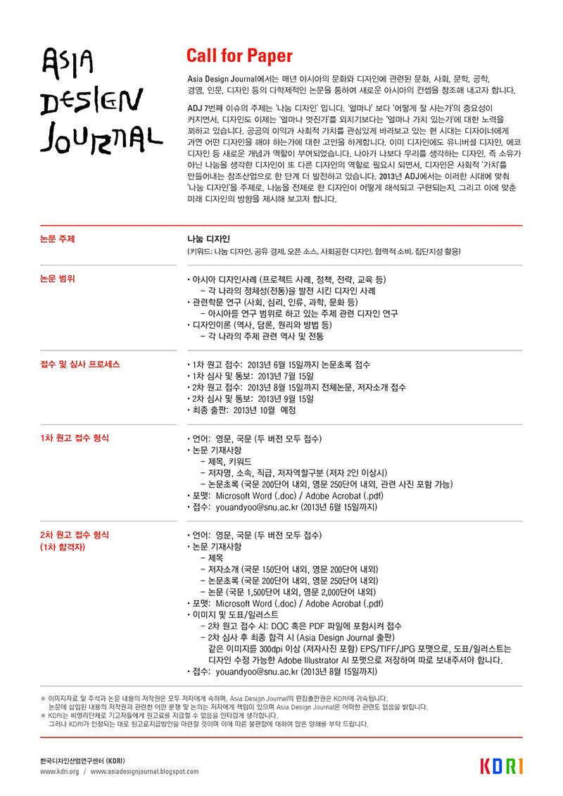 [Call for paper] Asia Design Journal 2013 : 나눔 디자인