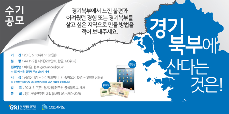 - 결과 발표 : 2013. 6. 7(금) 경기개발연구원 공식블로그 게재