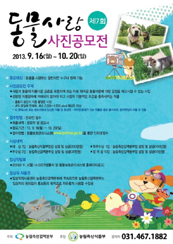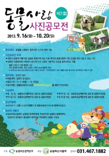 - 입상작 발표 : 2013.11.04(월) 14:00 (개별통지 및 동물보호관리시스템 홈페이지 공고)