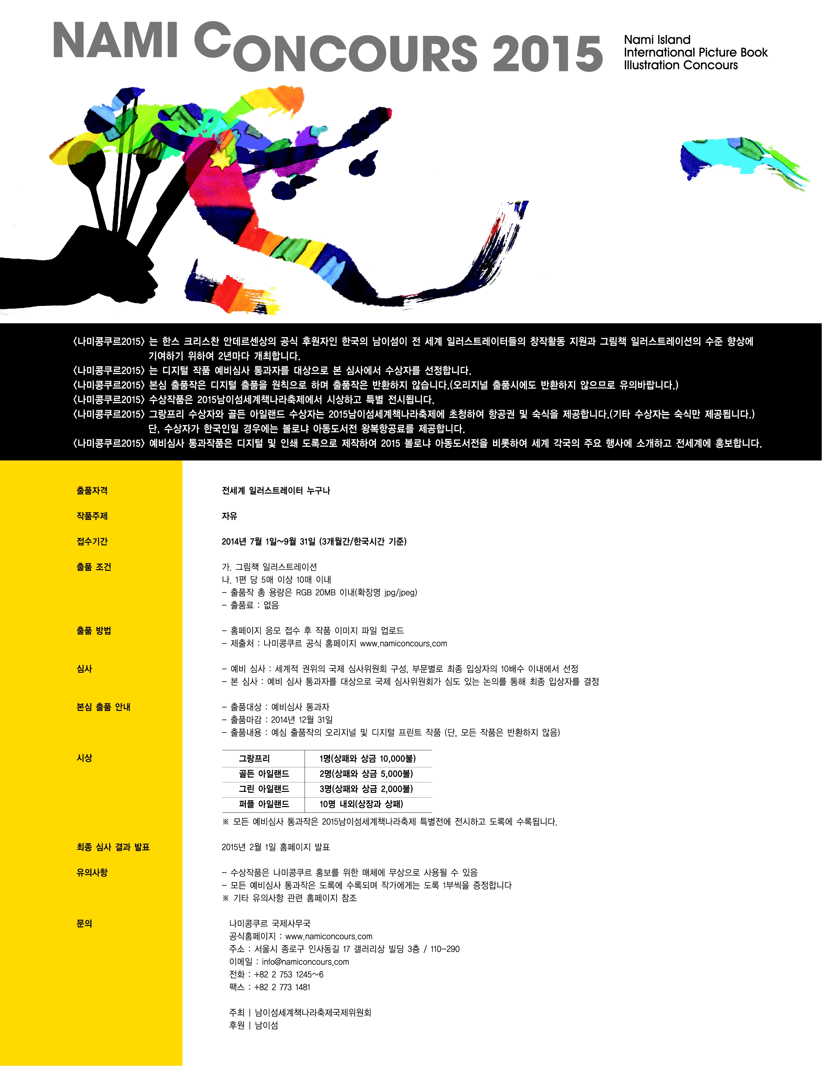 ※ 모든 예비심사 통과작은 2015남이섬세계책나라축제 특별전에 전시하고 도록에 수록됩니다.