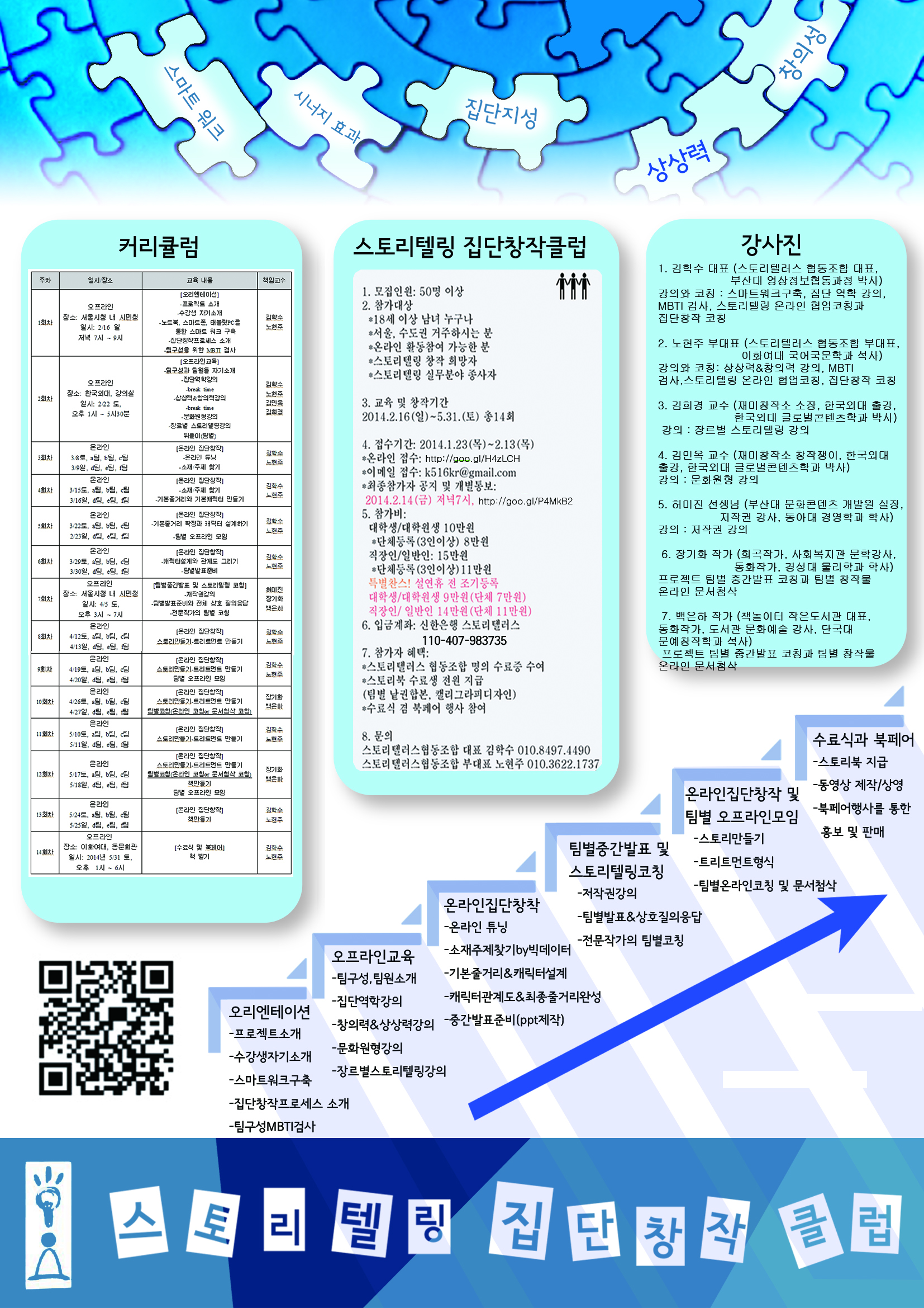 그리고 실생활에 쉽게 적용할 수 있는 스토리텔링 창작의 경험과 협업도구 사용법을 제공할