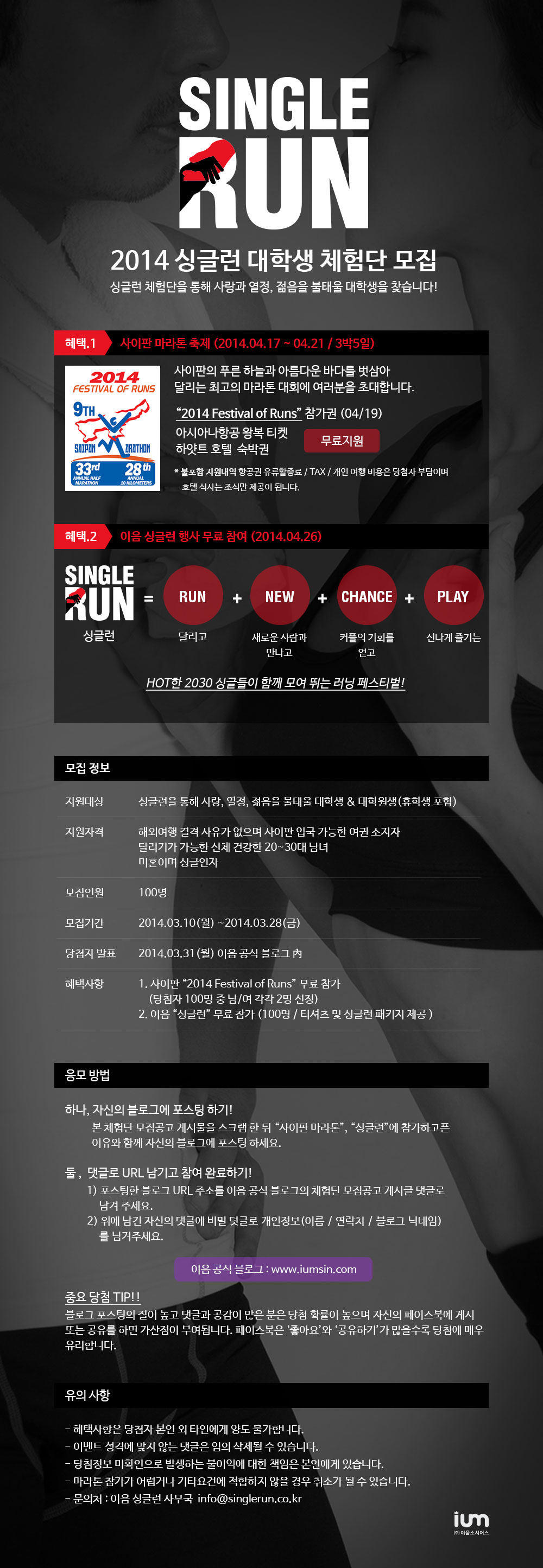 2014 싱글런 대학생 체험단 모집