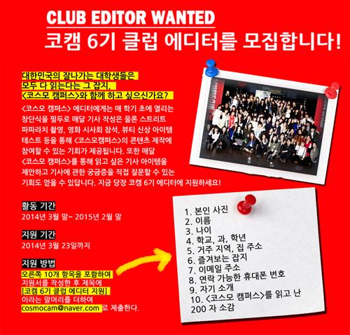 코스모 캠퍼스 6기 클럽 에디터를 모집합니다!