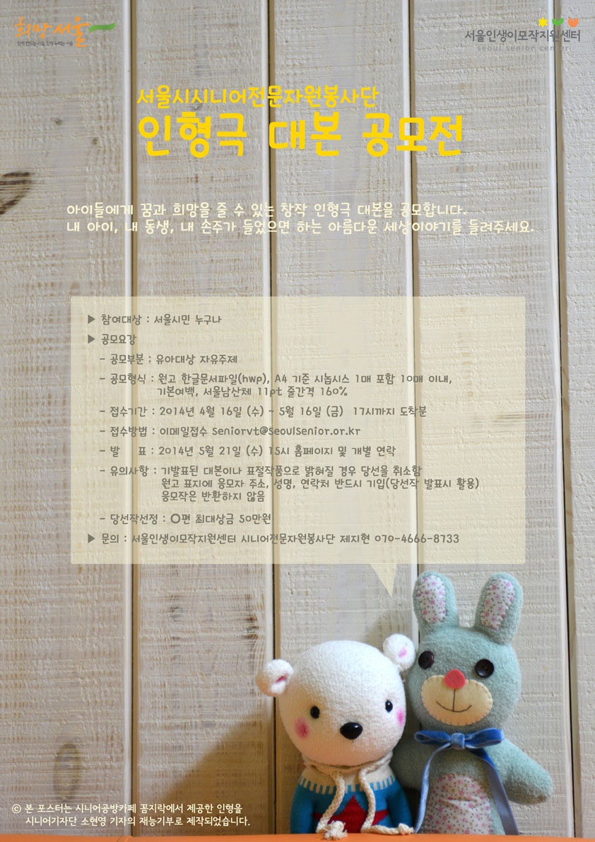 서울시시니어전문자원봉사단 '인형극 대본 공모전'