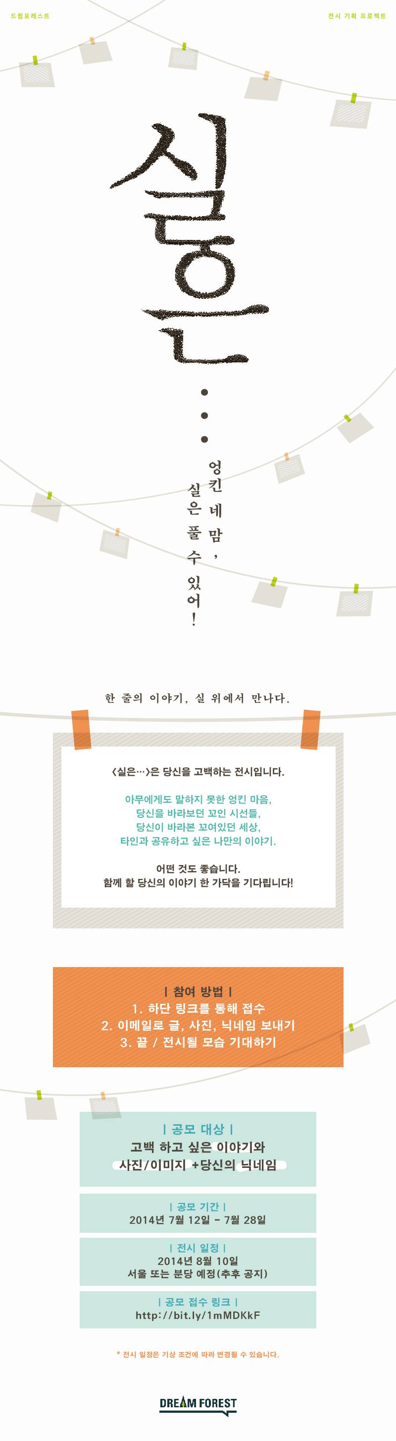 드림포레스트의 첫 번째 전시 기획 프로젝트 <실은...>은 당신의 이야기를 고백하는 전시입니다.