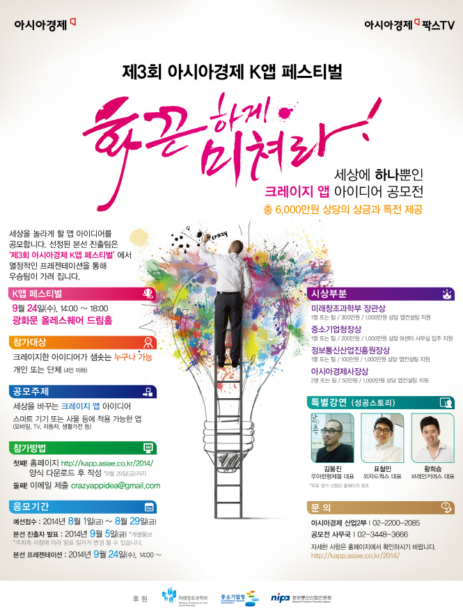 - 첫째 : 홈페이지 http://kapp.asiae.co.kr/2014/ 양식 다운로드 후 작성.