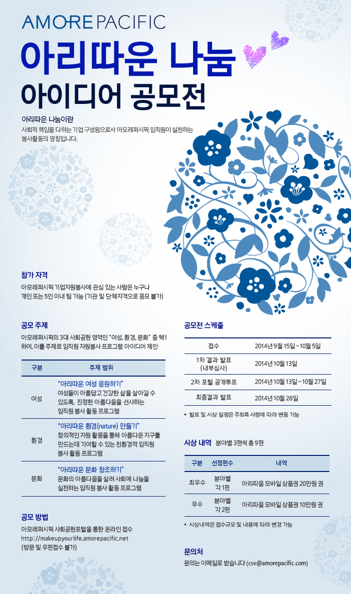 아모레퍼시픽 아리따운 나눔 아이디어 공모전