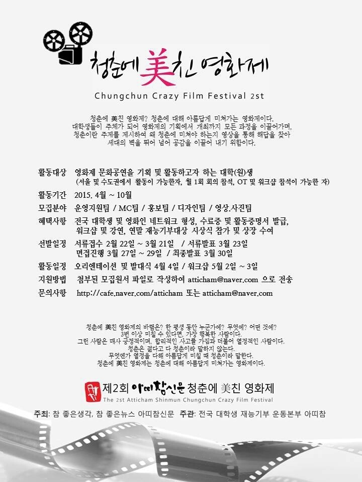 - 아띠참에서 제2회 청춘에 美친 영화제 기획단을 모집합니다.