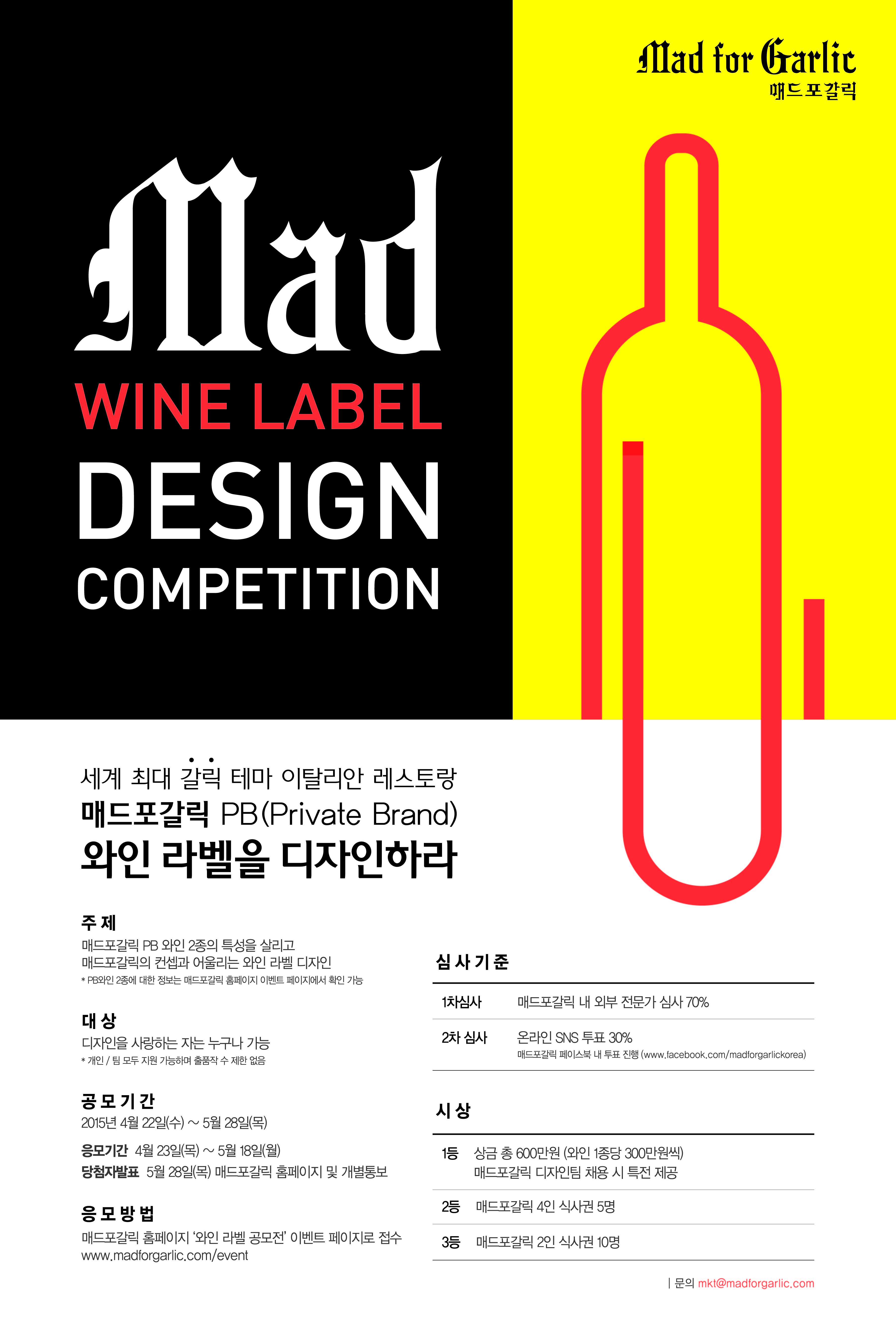 - 매드포갈릭 홈페이지 ' 와인 라벨 공모전' 이벤트 페이지로 접수 (www.madforgarlic.com/happenings/event_20150422)