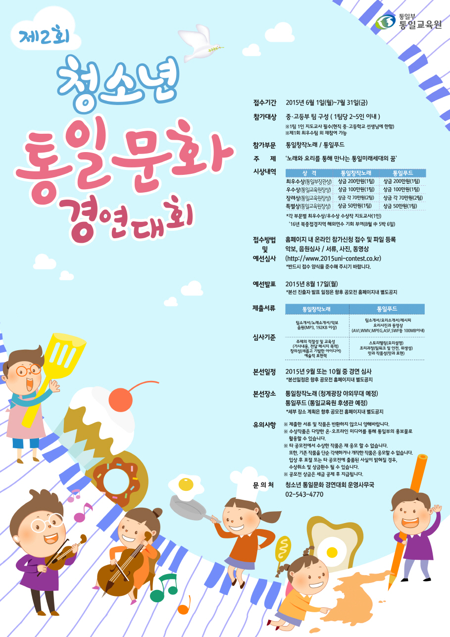 - 청소년 통일문화 경연대회 운영 사무국 ☎ 02-543-4770
