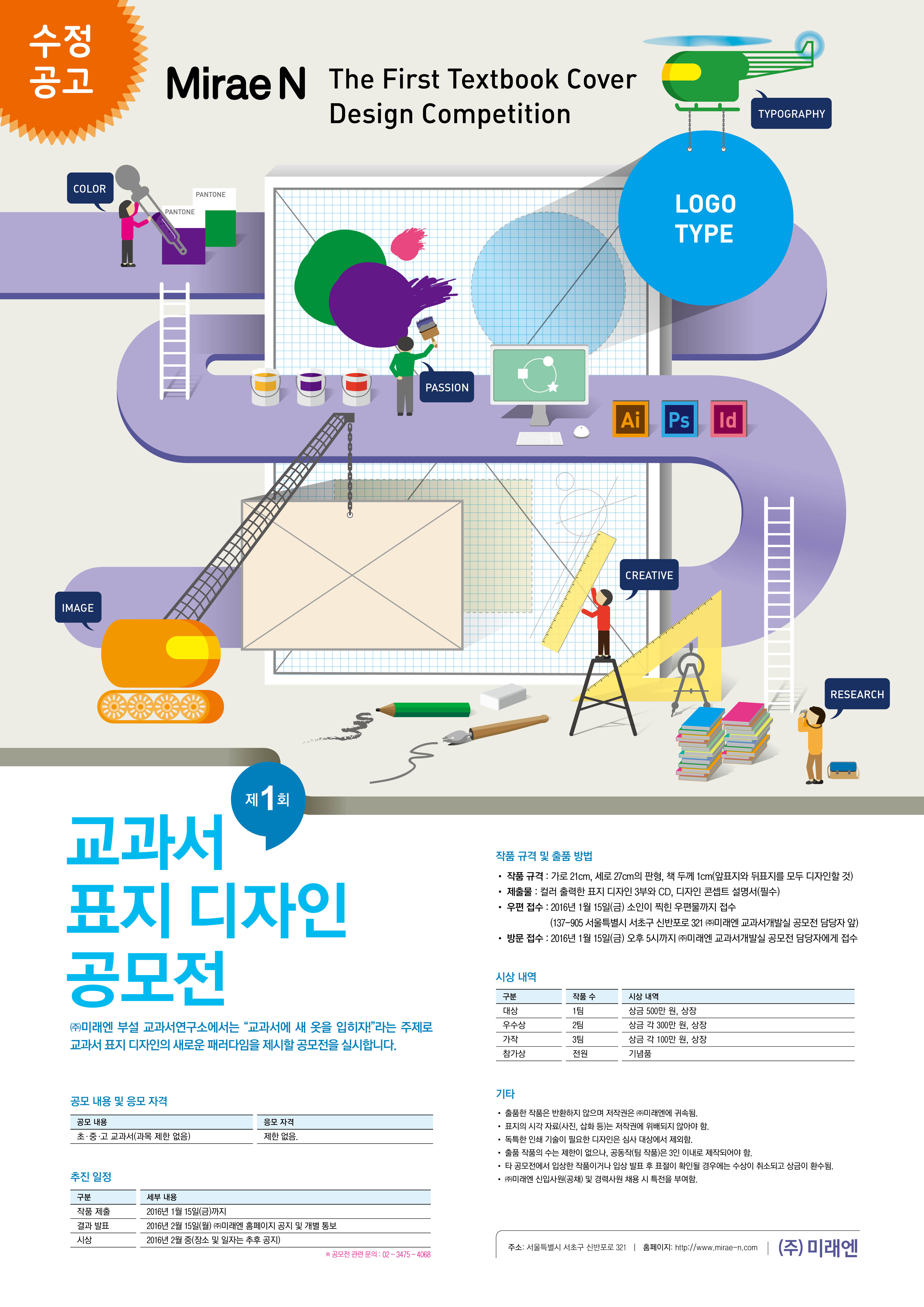 - 방문 접수 : 2016년 1월 15일(금) 오후 5시까지 ㈜미래엔 교과서개발실 공모전 담당자에게 접수