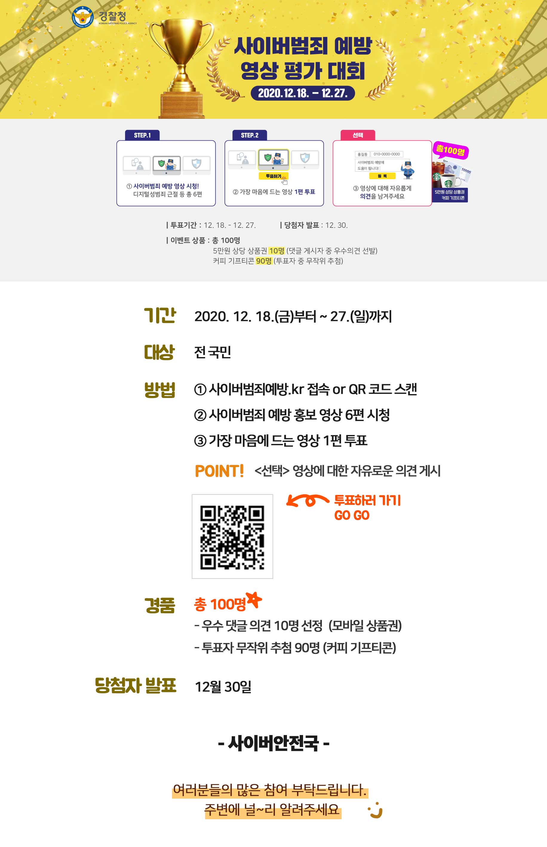 사이버범죄 예방 영상 평가 대회에 많은 관심 부탁드립니다!