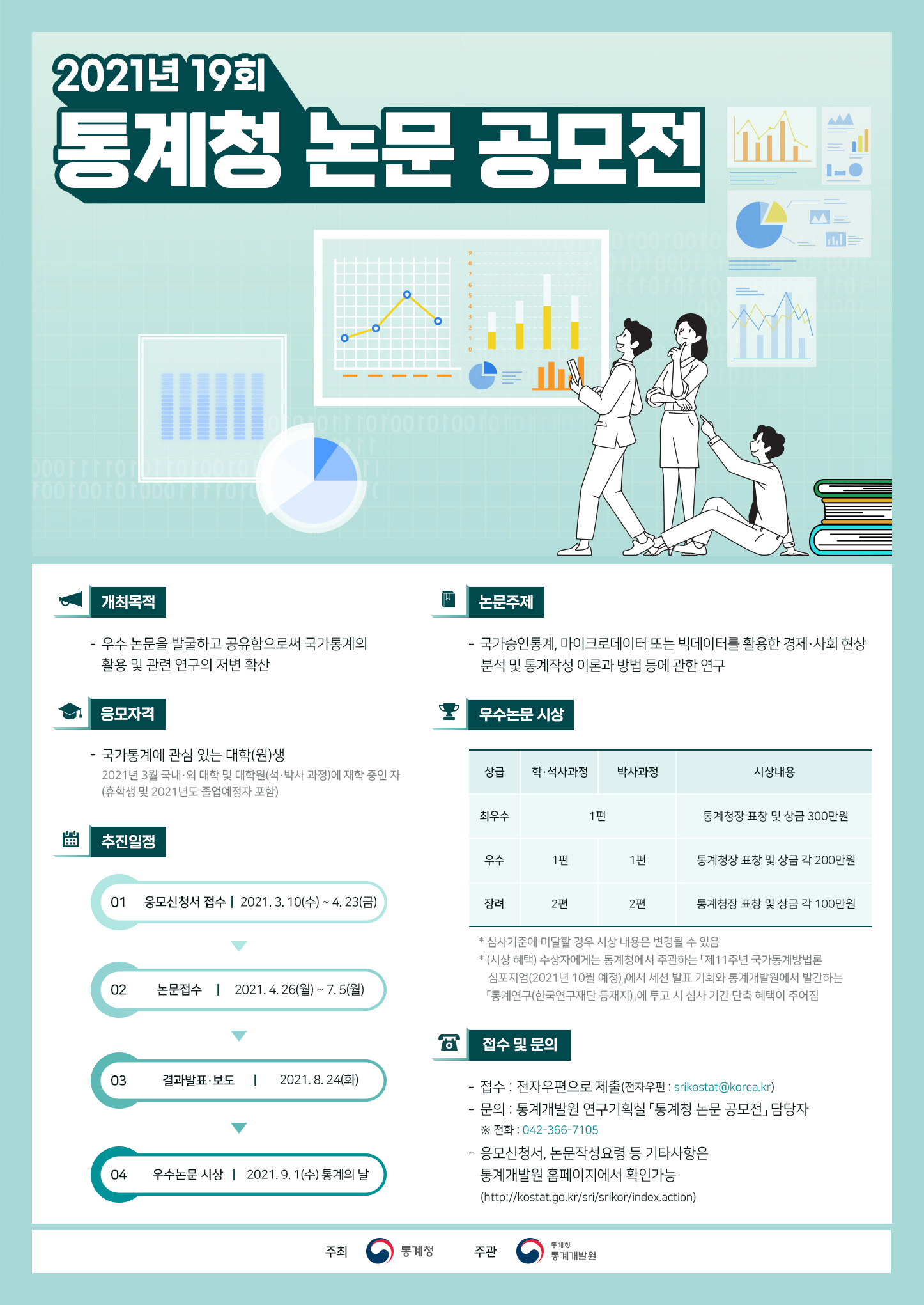 - 최우수(1편) : 통계청장 표창, 상금 각 300만원