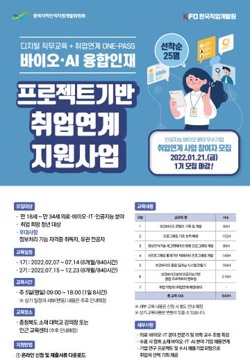 - 충북 주요 우수 바이오·AI 기업 채용 연계지원