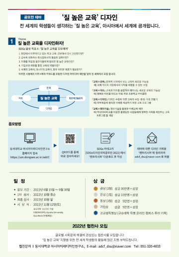 ‘질 높은 교육’ 디자인 - 전 세계의 학생들이 생각하는 ‘질 높은 교육’, 아시아에서 세계에 공개합니다.