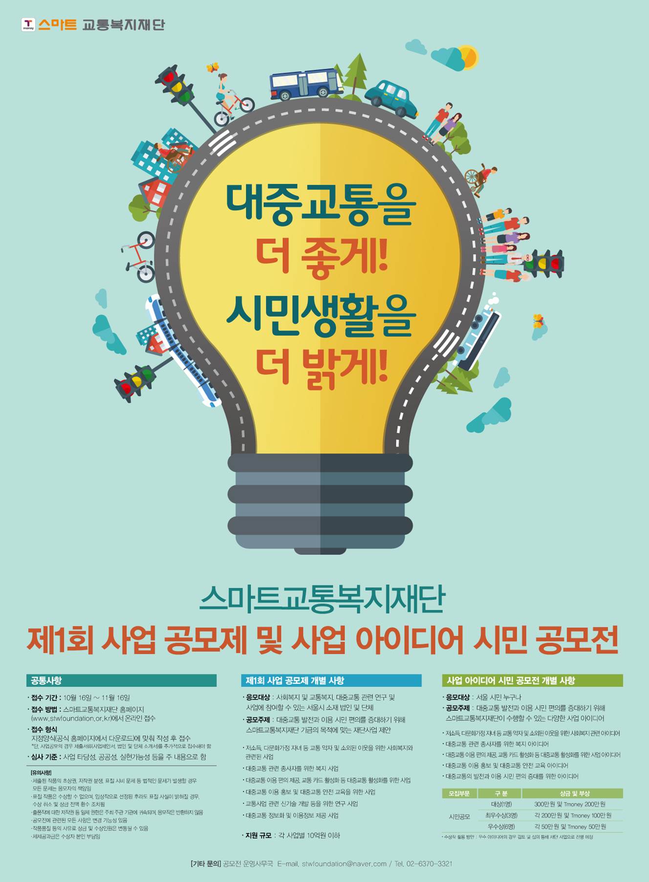 - 대중교통 발전과 이용 시민 편의를 증대하기 위해 스마트교통복지재단 기금의 목적에 맞는 재단 사업 제안