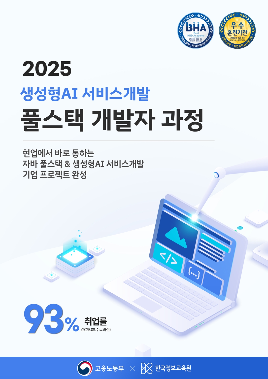 - IT 분야로의 취업을 희망하는 미취업 청년를 기업에서 필요로 하는 실무 인재로 양성하는 과정입니다.