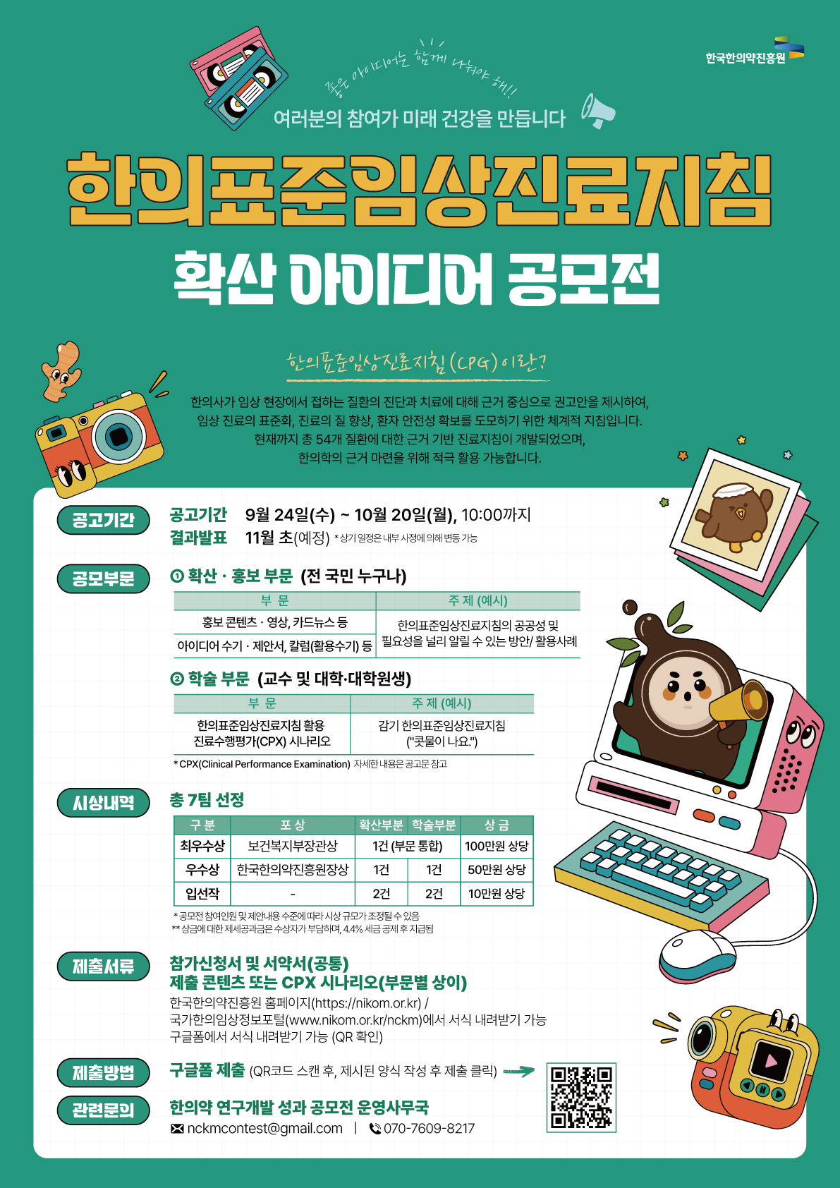 문의 전화번호: 한국한의약진흥원 공모전 운영지원팀 (☎070-7609-8217)
