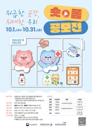 - 동상 2명(팀) 국립중앙의료원장상 및 상금 300,000원