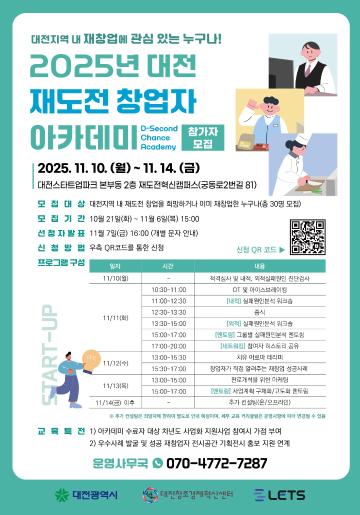 - 행사명: 2025년 대전 재도전 창업자 아카데미(D-Second Chance Academy)