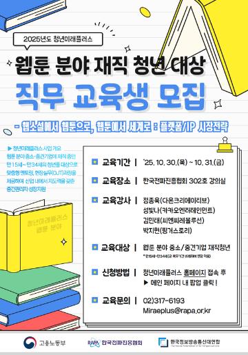 웹툰 분야 중소/중견기업 재직 청년 대상 직무 교육