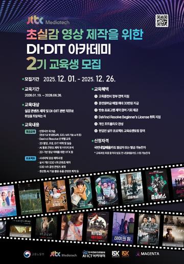- 교육대상 : 실감 콘텐츠 제작 및 DI·DIT 관련 직무로 취업을 희망하는 자