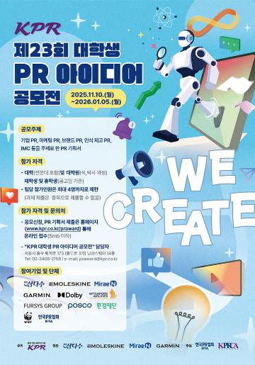 ■ 공모주제 : 기업 PR, 마케팅 PR, 브랜드 PR, 인식 제고 PR, IMC 등을 주제로 한 PR 기획서- 기업PR영상, 광고PR영상, 바이럴 영상, AI 활용 콘텐츠, SNS콘텐츠 등 기획서에 포함