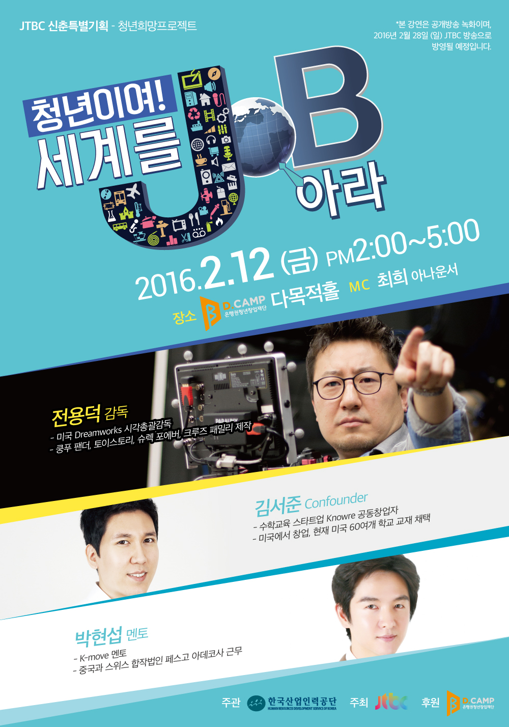 * 본 강연은 공개방송 녹화이며, 2016년 2월 28일 JTBC 방송으로 방영될 예정입니다