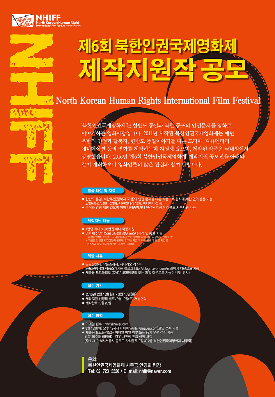 - 북한인권국제영화제 사무국 안경희 팀장 Tel: 02-723-3320 / E-mail: nhiff@naver.com