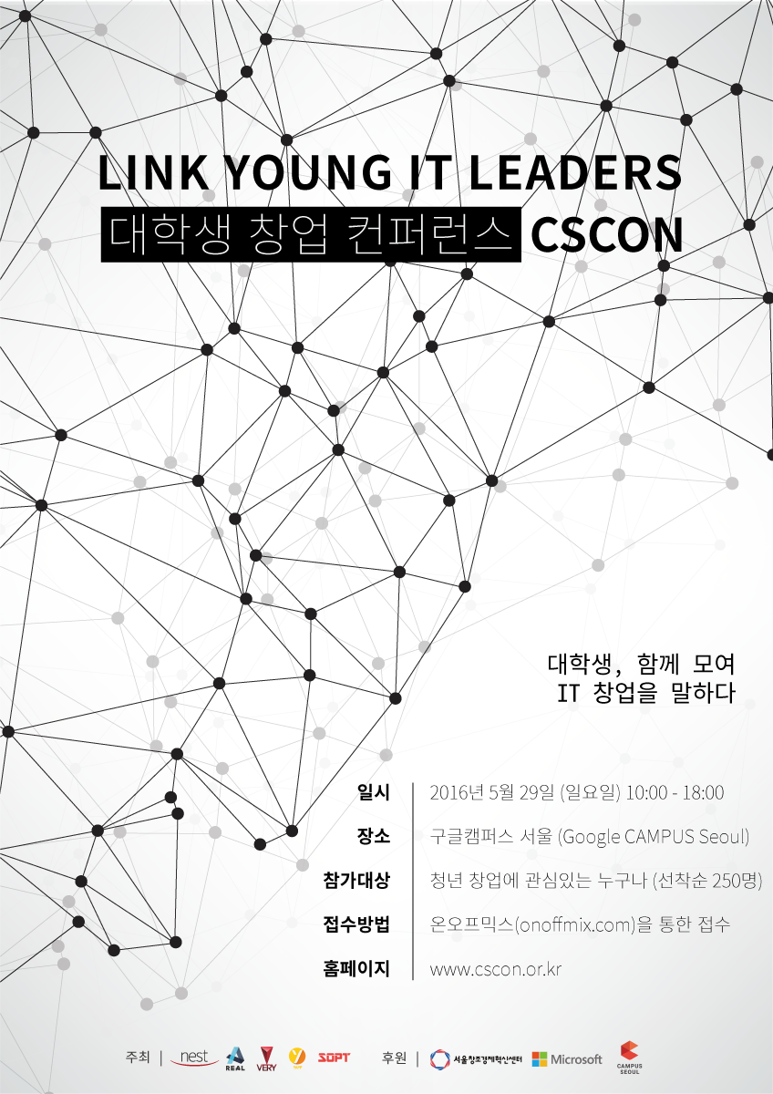 CSCON은 "대학생, 함께 모여 IT 창업을 말하다."를 주제로 올해 처음으로 개최되는 대학생을 위한 대학생 주도의 컨퍼런스로, 이번 회의 테마인 ' IT 창업' 을 주제로 각 분야에서 열정을 쏟는 또래 창업가들이 서로 만나 이야기를 공유하며 동기와 영감을 얻고, 네트워킹하는 기회를 제공합니다. 연세대학교 창업동아리 연합이 중심이 되어 전국 연합창업동아리들과 함께 전국의 대학생 혁신가들을 모시고 을 준비하고 있습니다.