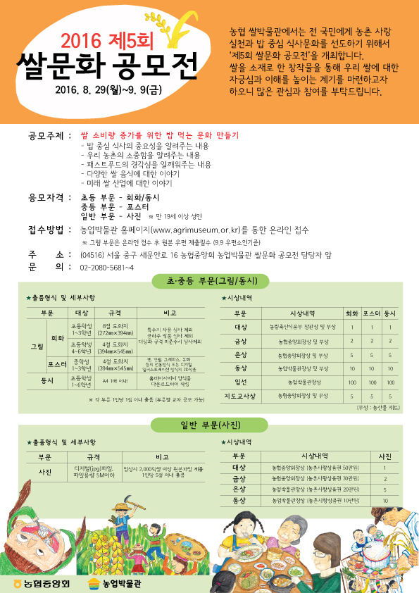 - 서울 중구 새문안로 16농협중앙회 농업박물관 쌀문화 공모전 담당자 앞 02-2080-5681~4