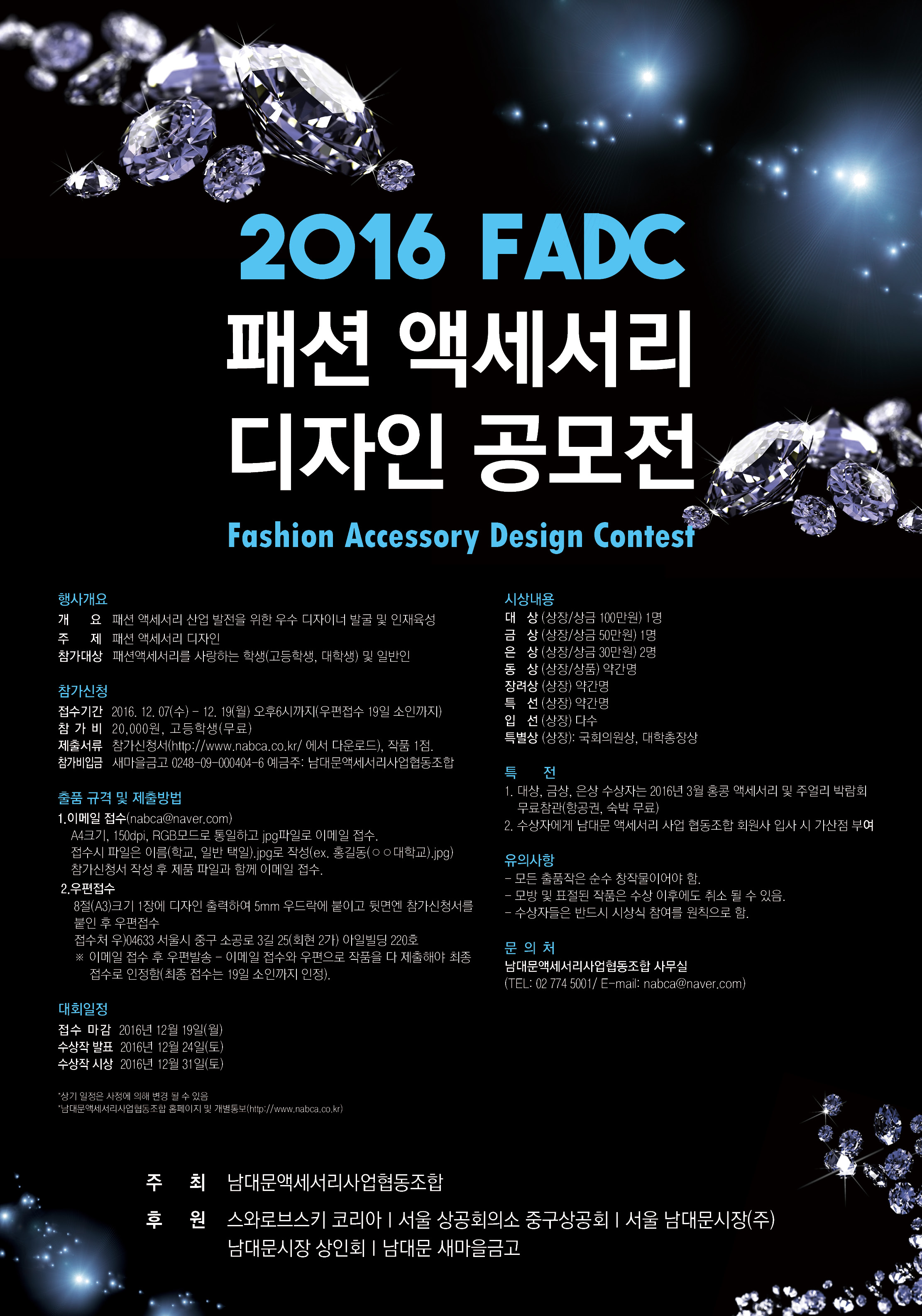 * 입상자에게 남대문 액세서리 사업 협동조합 회원사 우선 채용 및 채용시 가산점 부여.