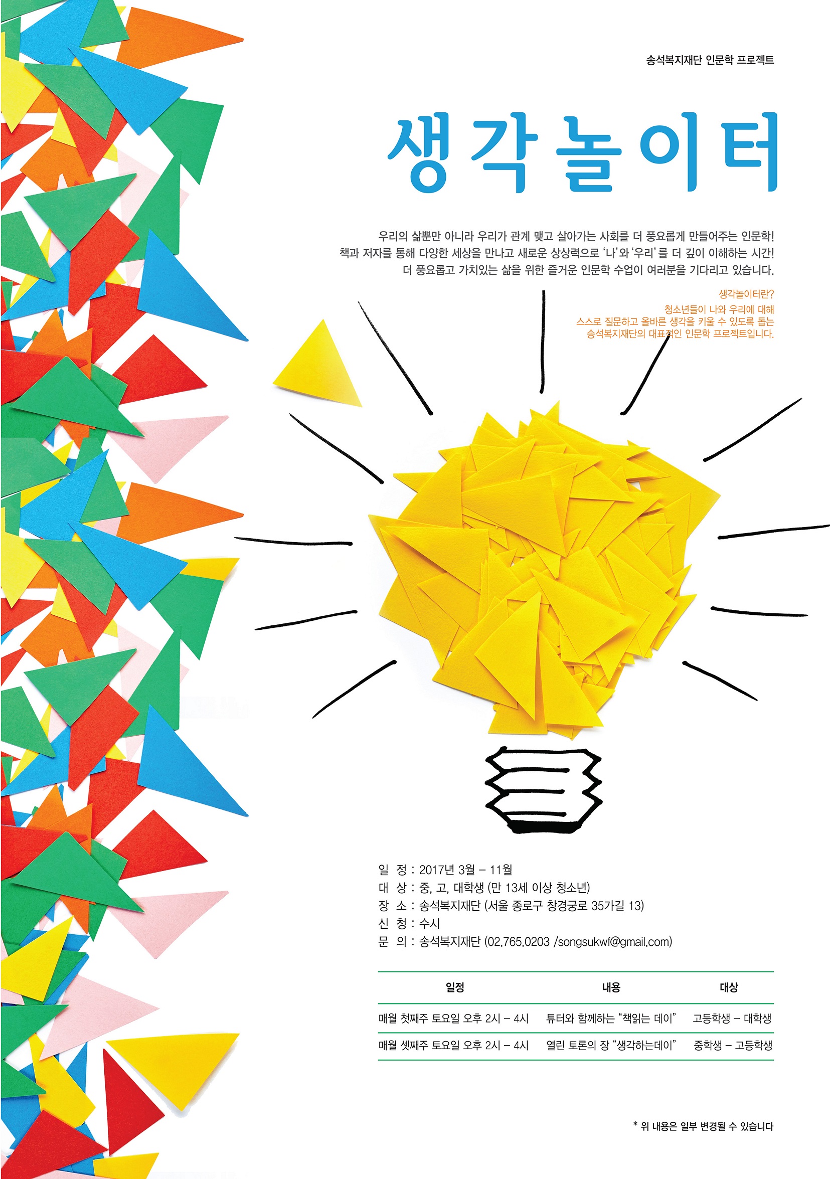 [모집] 2017 송석복지재단 인문학 프로젝트 <생각놀이터> 참가자 모집