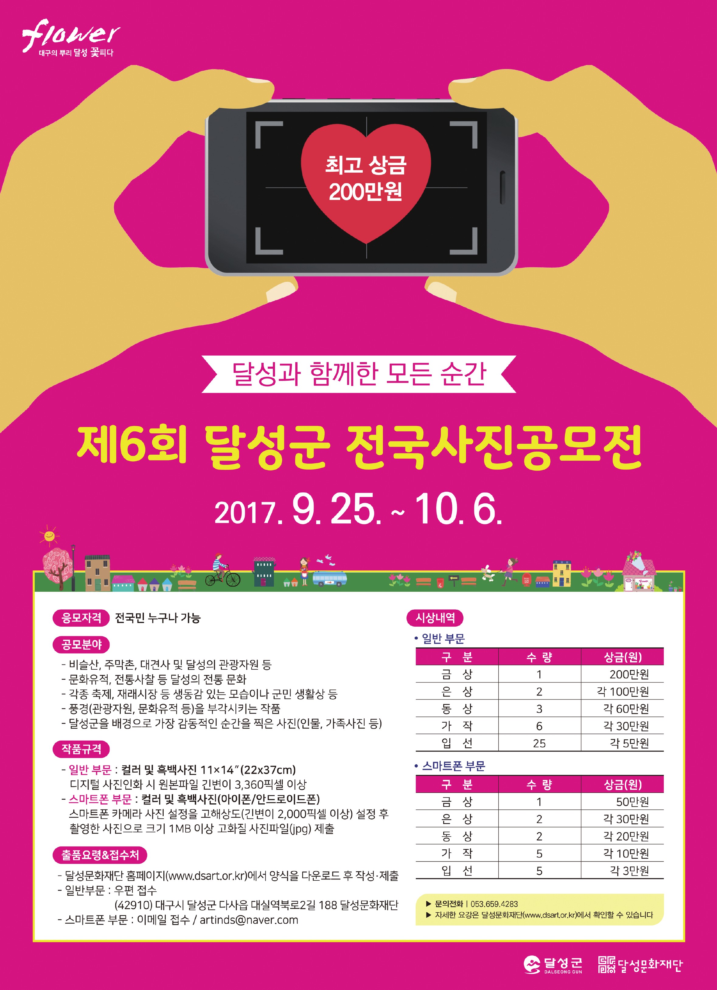 - 일반부문 : 우편접수 (42910)대구시 달성군 다사읍 대실역북로2길 188 달성문화재단