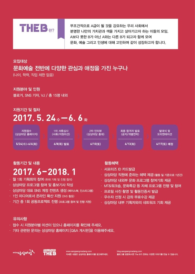 KT&G 상상마당 서포터즈 The B 14기 공개모집