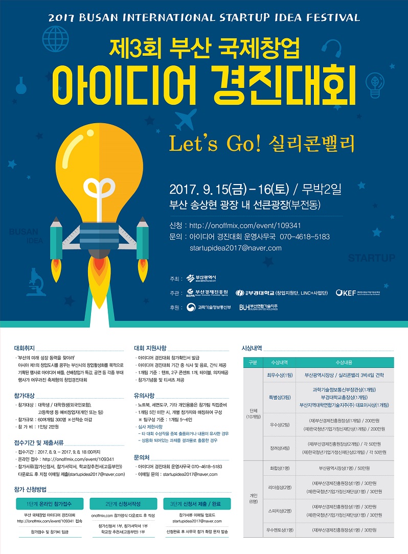 - 주관 : 부산경제진흥원, 부경대학교(창업지원단, LINC+사업단), (재)한국청년기업가정신재단