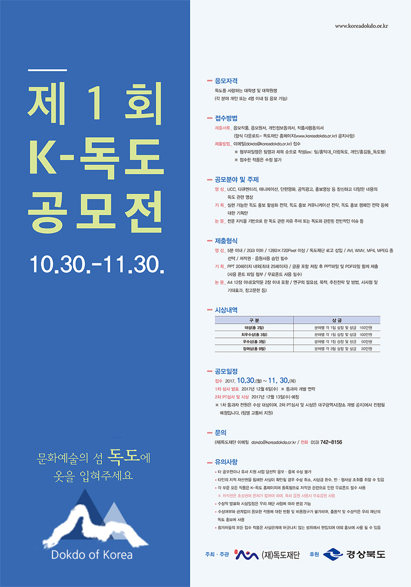 - 이메일 dokdo@koreadokdo.or.kr 접수