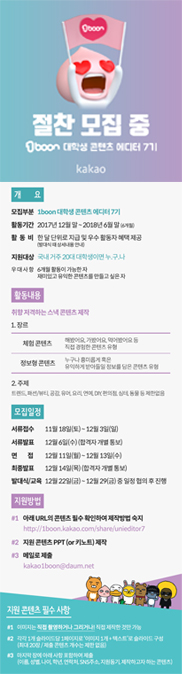 공모전 관련 문의사항은 문의처() 또는 이메일(kakao1boon@daum.net)로 문의해주십시오.