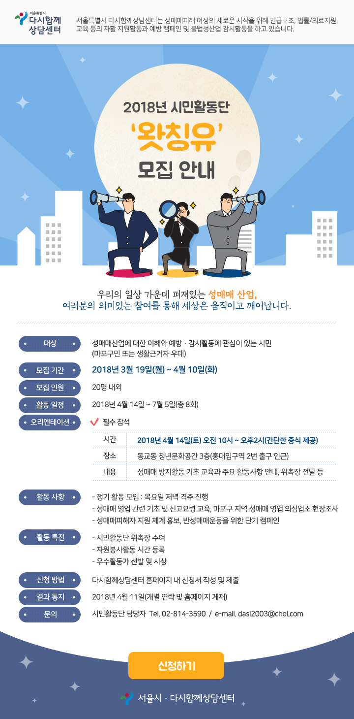 성매매방지 시민활동단 ' 왓칭유' 모집 공고(~4/10)
