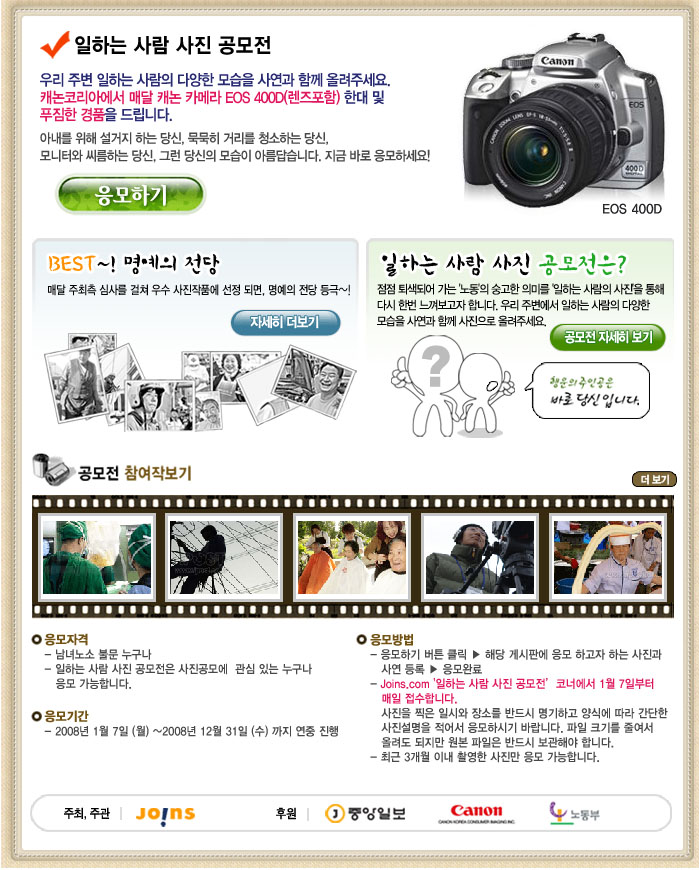 2008 조인스닷컴 연중 캠페인, '일하는 사람 사진 공모전'이 여러분과 함께 합니다.