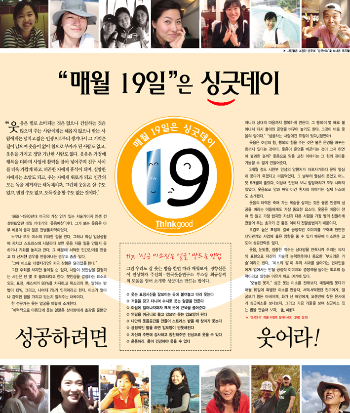 ■부문 : 1. '19일은 싱긋데이' 미소에 얽힌 재미있거나 감동적인 사연