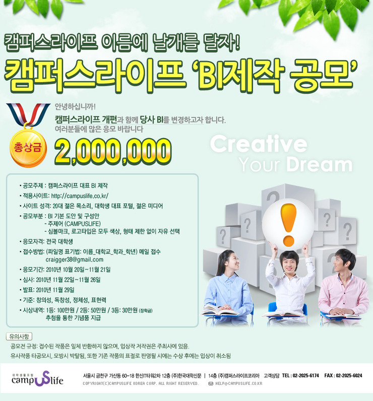 [캠퍼스라이프 BI제작 공모]총상금 200만원 장학금
