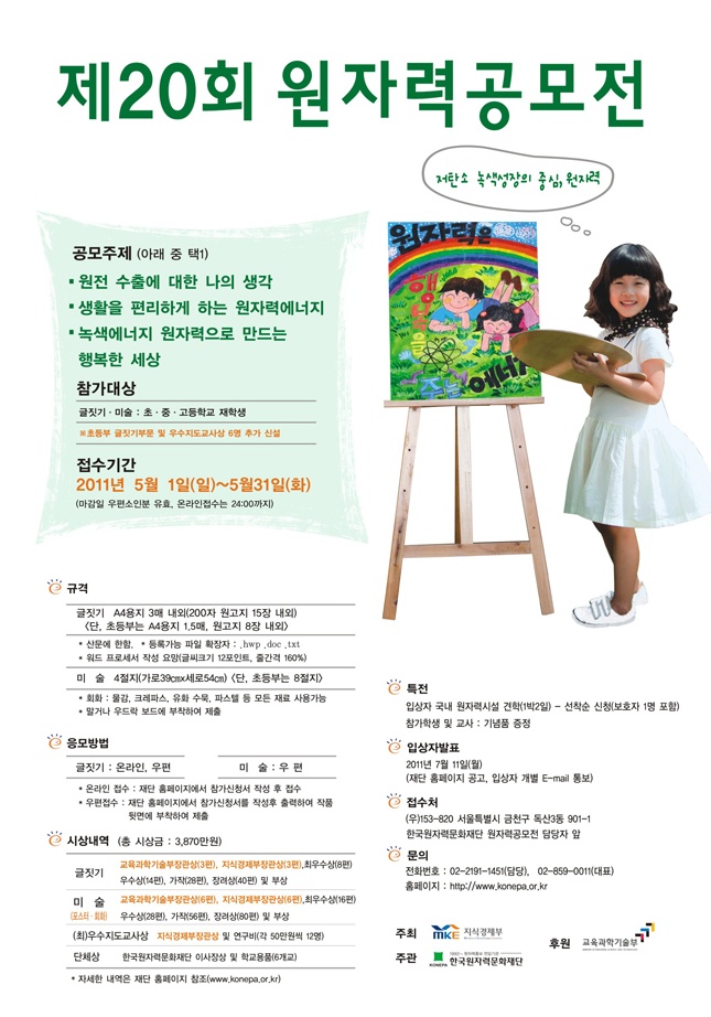 - 전국 초·중·고등학생을 대상으로 원자력의 다양한 이용에 대한 창의적인 글과 그림 공모