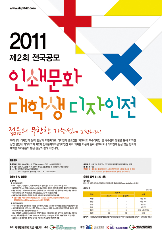 다. 심사발표 : 2011. 12. 5(월) 대전충남인쇄정보산업협동조합 홈페이지(www.dcp042.com)에 게시
